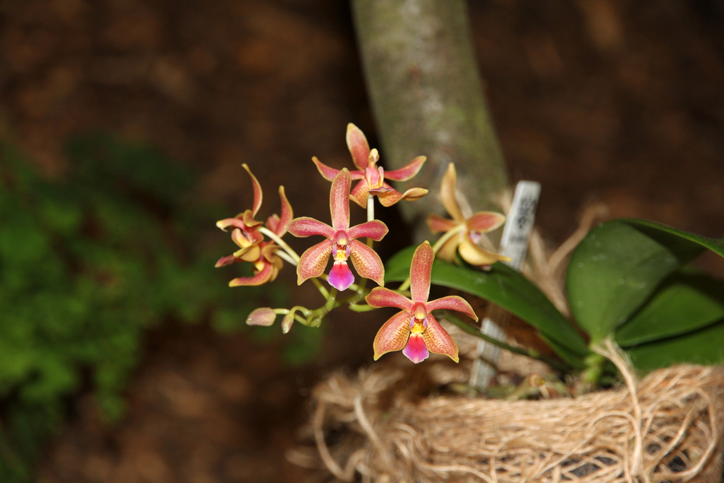 Dendrobium fytchianum Phalaenopsis Tetrasambo (Phalaenopsis tetraspis x Phalaenopsis amboinensis ‘White’) Holcoglossum amesianum Ionopsis utricularioides Phalaenopsis tetraspis Phalaenopsis lobbii Phalaenopsis Jong’s Timothy Gelber (Phalaenopsis Timothy Christopher x Phalaenopsis Gelblieber) Cattleya intermedia Cattleya purpurata Cattleya Gila Wilderness