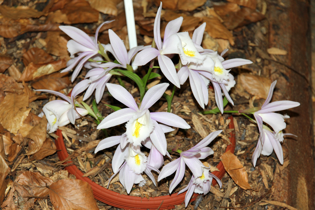 Dendrobium Nestor (Dendrobium parishii x Dendrobium anosmum) Masdevallia Vanda ampullacea Rhyncholaeliocattleya King of Taiwan (Rhyncholaeliocattleya Bryce Canyon x Rhyncholaeliocattleya Purple Ruby) Cattleya trianae Guarianthe skinneri Paphiopedilum delenatii Pleione bulbocodioides Dendrobium Hamana Lake (Dendrobium Kurenai x Dendrobium