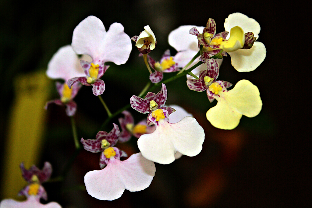 Oncidium Tiger Crow (Oncidium Tiger Hambühren x Oncidium Crowborough (1965)) Dendrobium farmeri Dendrobium glomeratum Cattleya Kiritsubo (Cattleya alaorii x Cattleya nobilior) Vanda n.r. ‘Pink Magic’ Phalaenopsis Hiroshima Amaraspis (Phalaenopsis amabilis x Phalaenopsis tetraspis ‘C#1’) Cattleya