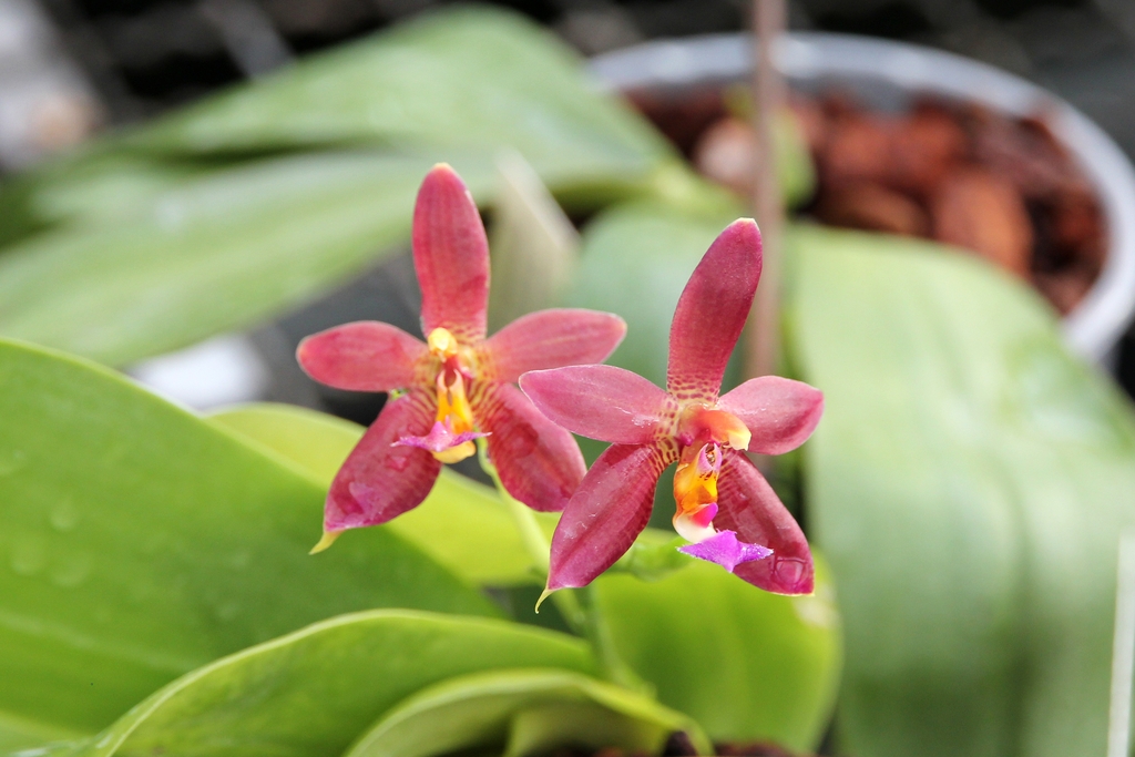 Brassavola nodosa ‘Panama Soiree’ Kefersteinia chocoensis Acianthera foetens Phalaenopsis Ambotrana (Phalaenopsis sumatrana var. zebrina x Phalaenopsis amboinensis ‘White’) Phalaenopsis Mannosa (Phalaenopsis mannii x Phalaenopsis venosa) Bulbophyllum rufinum Dendrobium Pauline Rankin (Dendrobium Hilda Poxon x Dendrobium tetragonum) Paphiopedilum