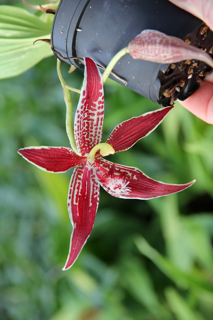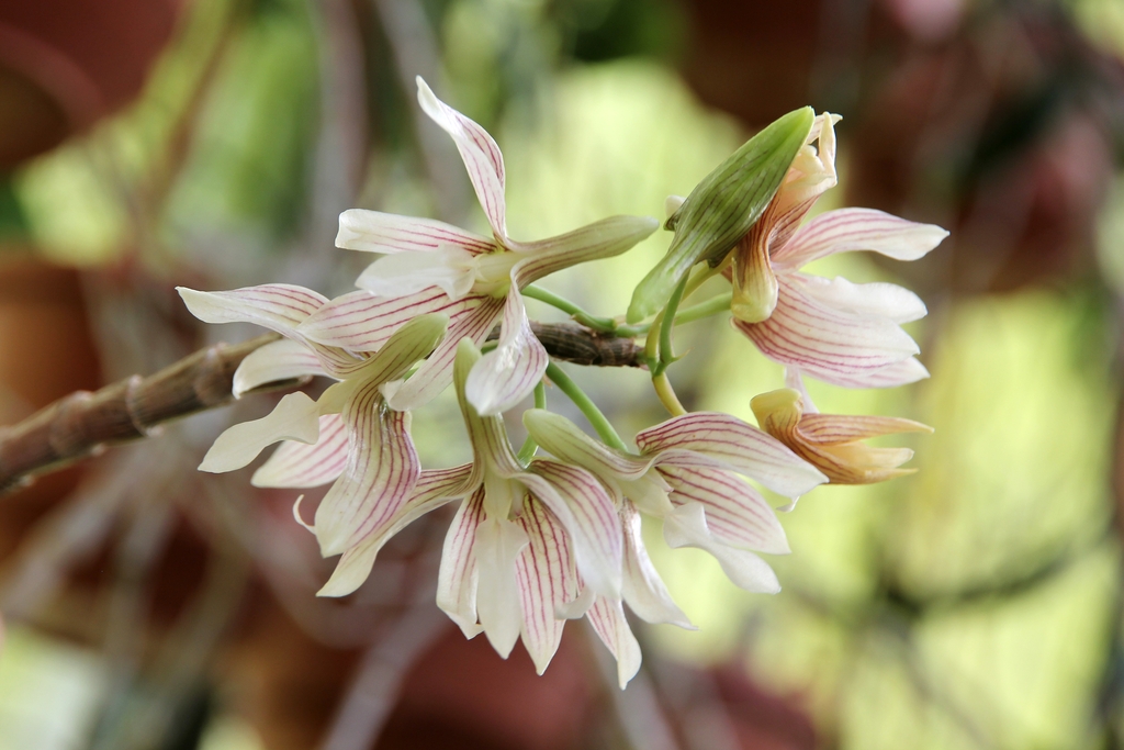 Brassavola nodosa ‘Panama Soiree’ Kefersteinia chocoensis Acianthera foetens Phalaenopsis Ambotrana (Phalaenopsis sumatrana var. zebrina x Phalaenopsis amboinensis ‘White’) Phalaenopsis Mannosa (Phalaenopsis mannii x Phalaenopsis venosa) Bulbophyllum rufinum Dendrobium Pauline Rankin (Dendrobium Hilda Poxon x Dendrobium tetragonum) Paphiopedilum