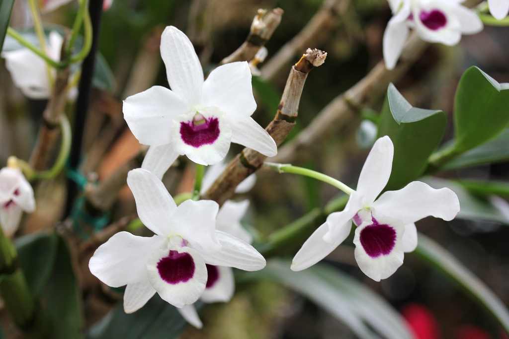 Phragmipedium Living Fire (Phragmipedium Sorcerer’s Apprentice x Phragmipedium besseae) Dendrobium Nora Tokunaga (Dendrobium atroviolaceum x Dendrobium rhodostictum) Paphiopedilum delenatii Phalaenopsis stuartiana Cattleya loddigesii var. suavissima Paphiopedilum Lynleigh Koopowitz (Paphiopedilum delenatii x Paphiopedilum malipoense) Calanthe Georges Fleurié (Calanthe