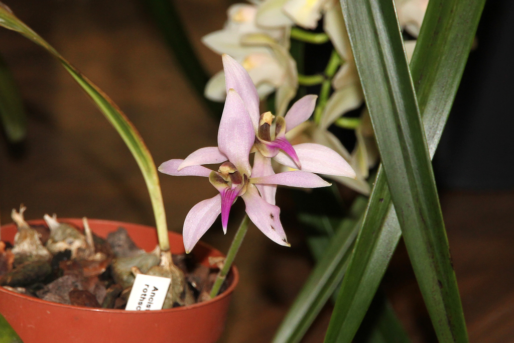 Paphiopedilum Rosy Dawn (Paphiopedilum Astarte x Paphiopedilum Gwen Hannen) Paphiopedilum hirsutissimum f. alboviride ‘White Wings’ Phragmipedium x richteri ‘Anja’ (Phragmipedium boissierianum x Phragmipedium pearcei) Bulbophyllum grandiflorum Encyclia selligera Epidendrum stamfordianum Coelogyne nitida
