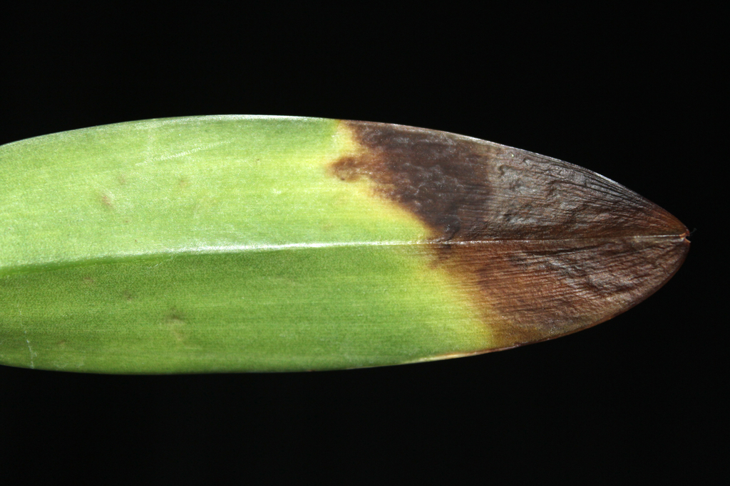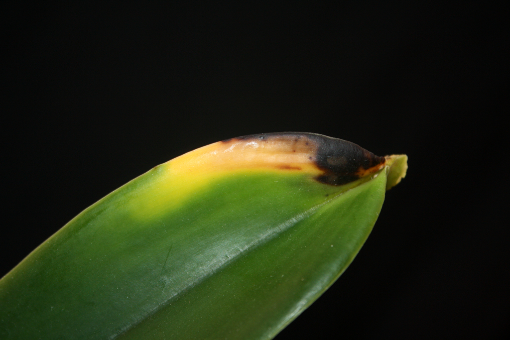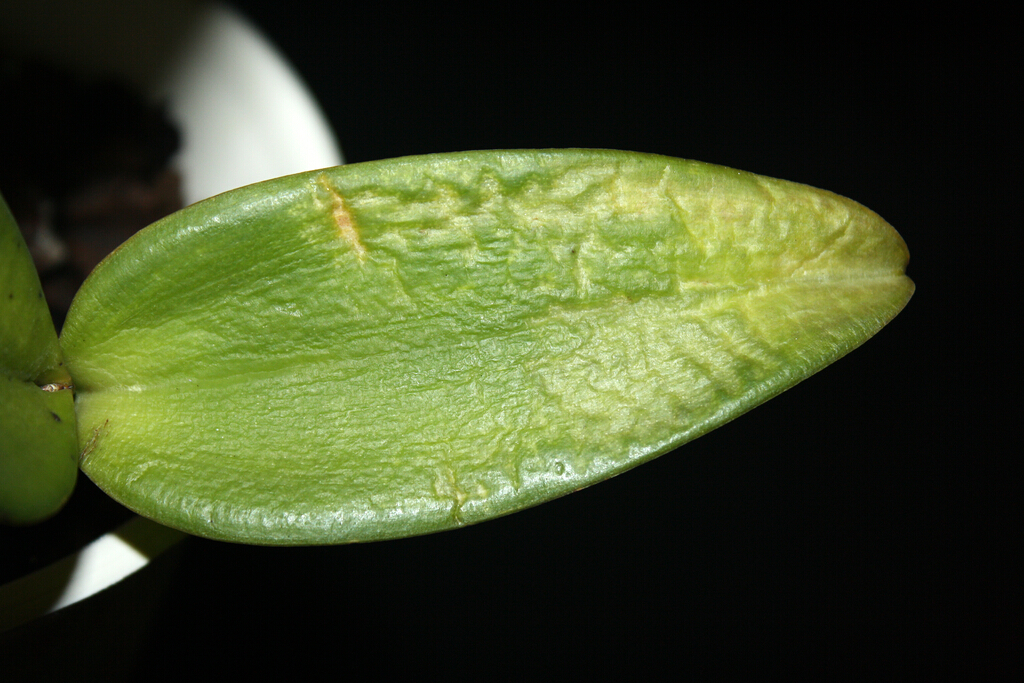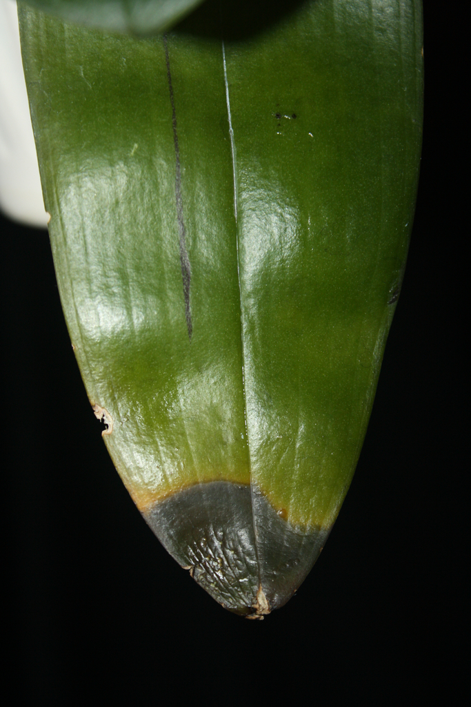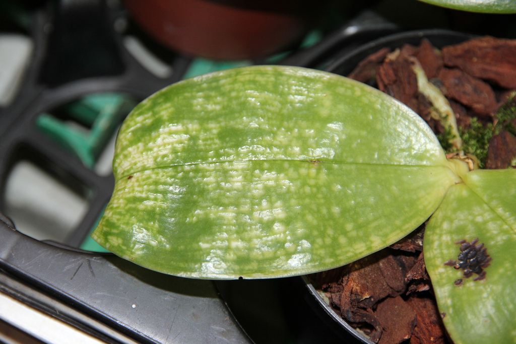 Повреждение вызывает струя горячего воздуха от батареи, особенно в опасности находятся растения, листья которых свисают над батареей. На некоторых видах (сортах) Phalaenopsis (определённая структура листа) схожее повреждение появляется от солнца, т.е. СОЛНЕЧНЫЙ ОЖОГ.