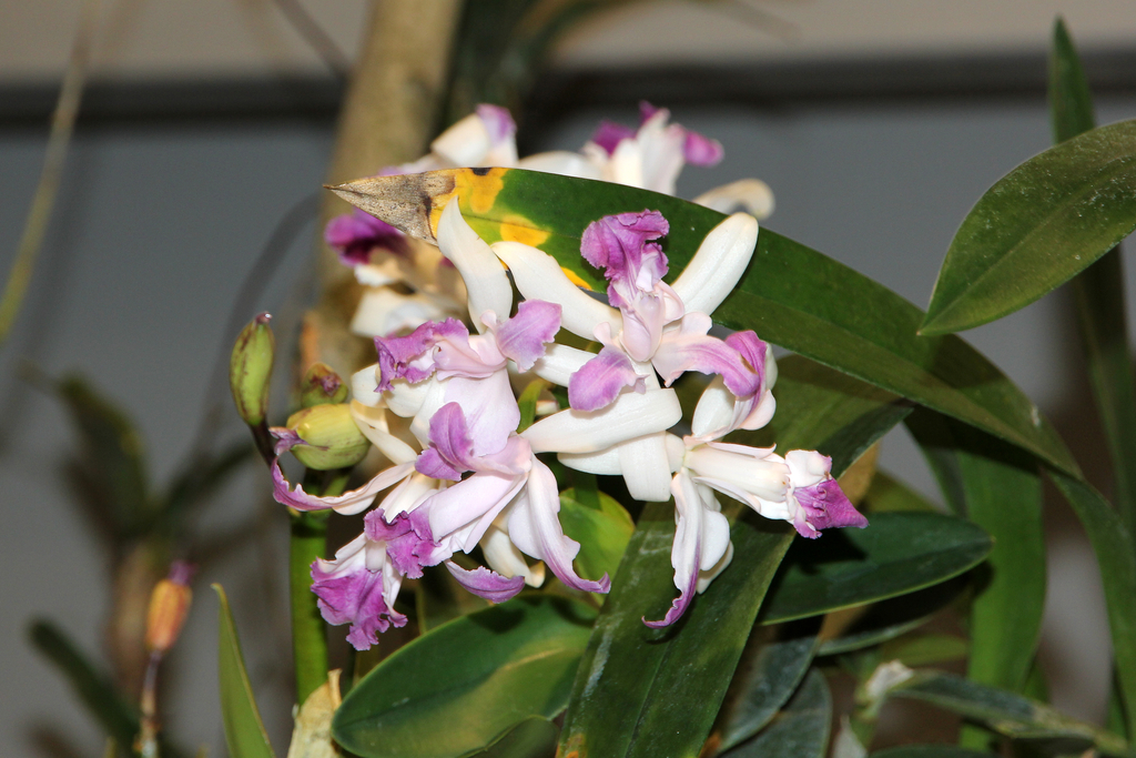 Coelogyne Intermedia (Coelogyne cristata x Coelogyne tomentosa) Paphiopedilum Phips (Paphiopedilum Aureum x Paphiopedilum Boltonii) Coelogyne usitana Rhyncholaelia glauca Cymbidium Coelogyne Himmelskönigin (Coelogyne mooreana x Coelogyne nitida) Dendrobium Stardust (Dendrobium unicum x Dendrobium Ukon) Oncidium sp. Dendrobium cruentum